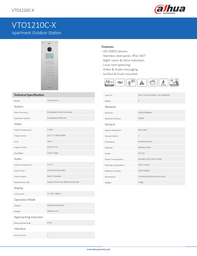VTO1210C-X - Ficha Técnica Dahua