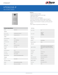 VTO2211G-WP - Ficha Técnica Dahua