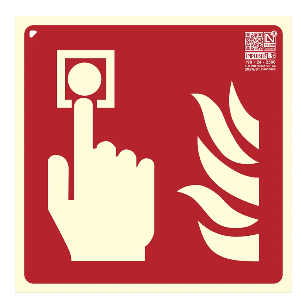 Señal pulsador de alarma 42x42cm. 20m